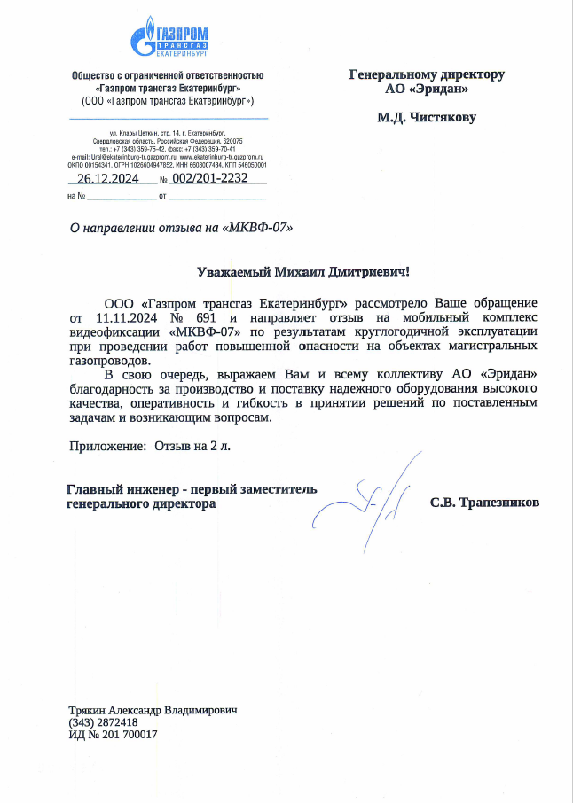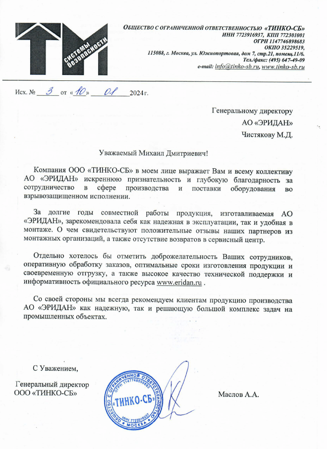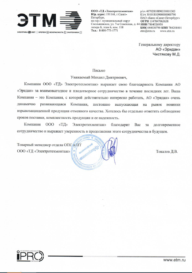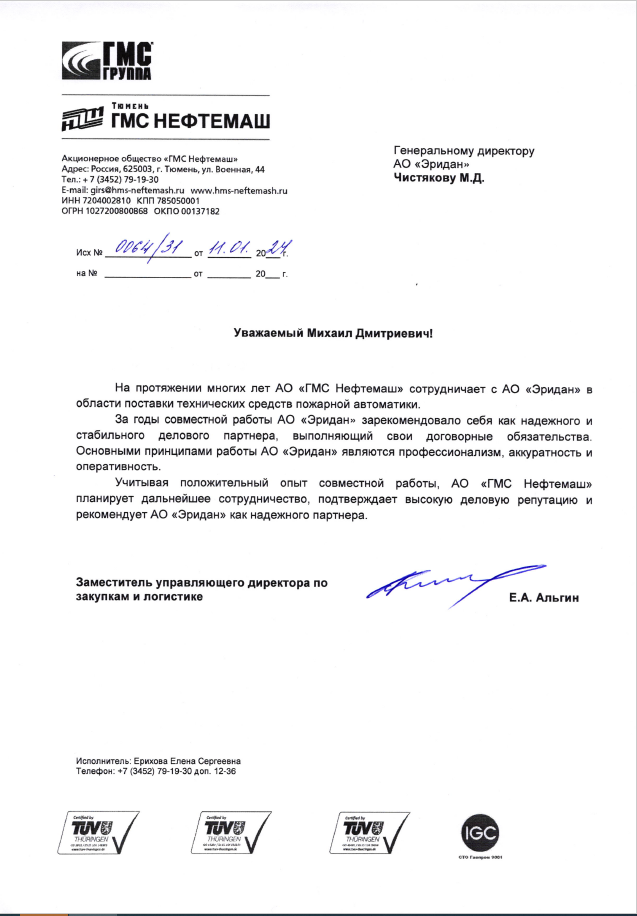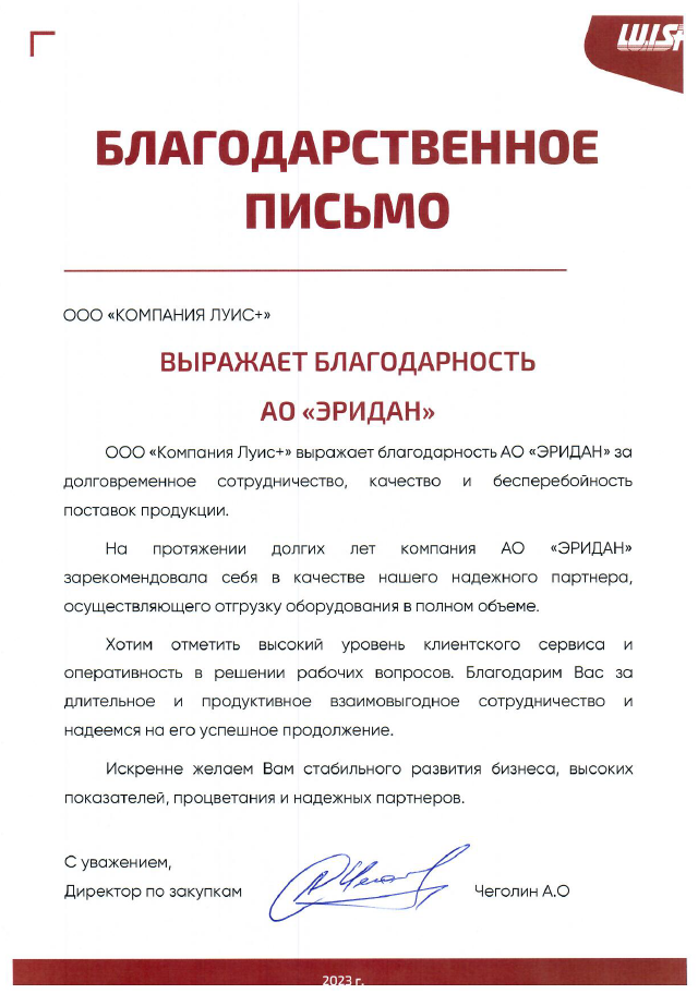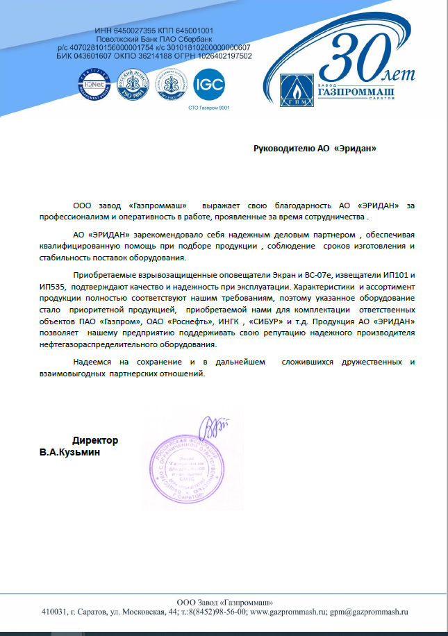 Компания Эридан — это проверенный временем надежный поставщик с высокой деловой репутацией. Система менеджмента качества соответствует ГОСТ Р ИСО 9001-2015. Продукция компании рекомендована Газпромом, Транснефтью, Сибуром и др.