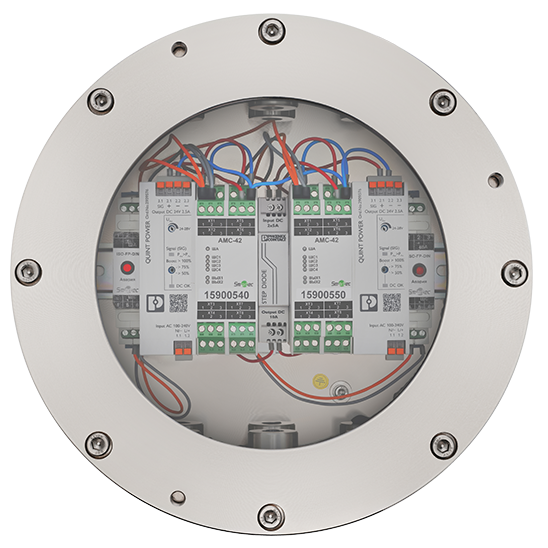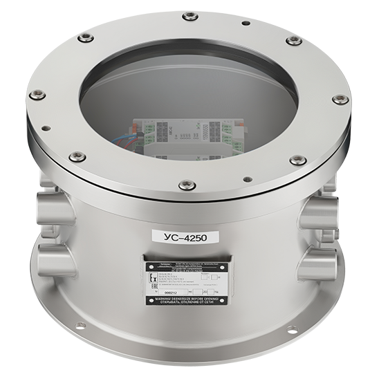 Устройство сопряжения в модификации УС-07-M4250 представляет собой адресный модуль управления с преобразователем напряжения во взрывозащищенном корпусе.