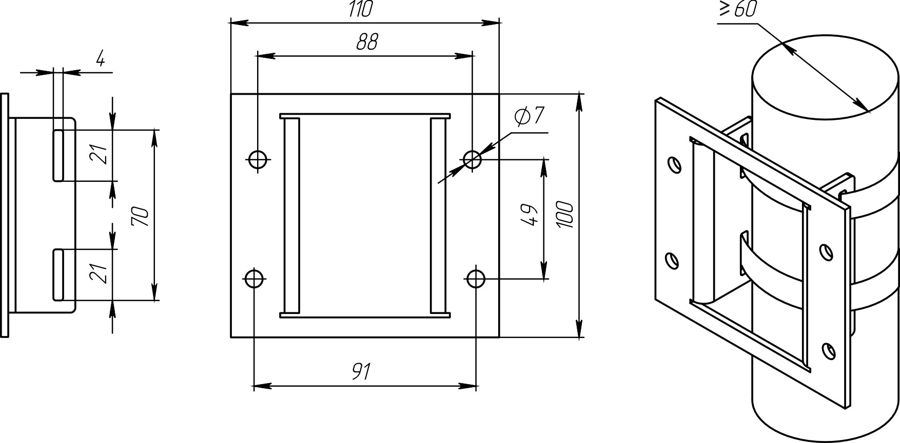 АК-СП предназначен для монтажа оборудования на столб или опору.