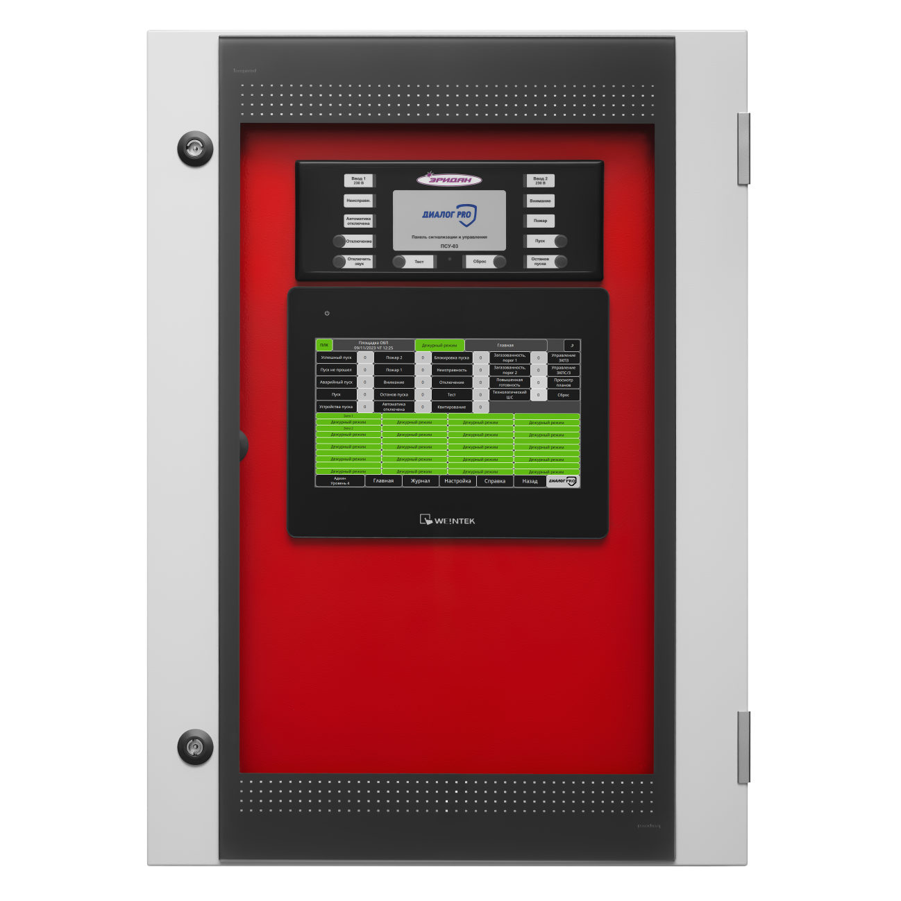 ППКУП «Базовая станция ДPRO-WE-M1511» построена на ПЛК Weintek (возможна конфигурация на ПЛК Regul) и предназначена для контроля и управления системами адресно-аналоговой пожарной сигнализации, оповещения, модульного пожаротушения, дымоудаления и другим инженерным и технологическим оборудованием участвующим в обеспечении пожарной безопасности. Совместно с пультовой станцией ДPRO-WE-M1510 может применяться при построении распределенной СПА.