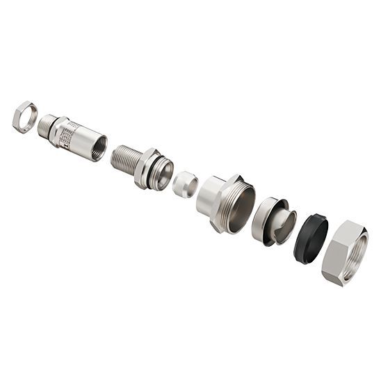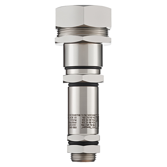 Взрывозащищенный кабельный ввод с Ех маркировкой для монтажа бронированным кабелем (любой тип брони) с наружным диаметром 10-14 мм в металлорукаве с условным проходом D=25 мм из нержавеющей коррозионно-стойкой стали.