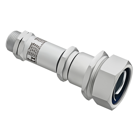 Взрывозащищенный кабельный ввод с Ех маркировкой для монтажа бронированным кабелем (любой тип брони) с наружным диаметром 10-14 мм в металлорукаве с условным проходом D=25 мм из конструкционной стали с гальваническим покрытием.
