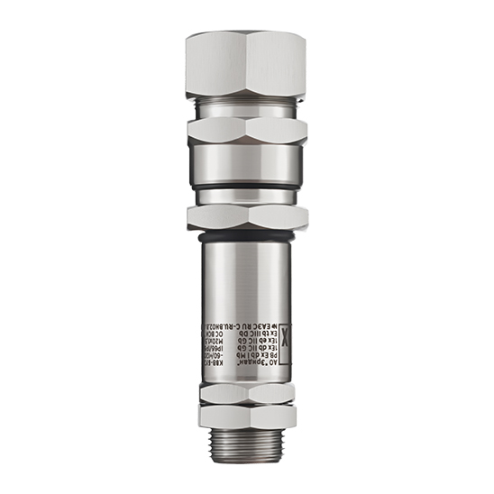 Взрывозащищенный кабельный ввод с Ех маркировкой для монтажа бронированным кабелем (любой тип брони) с двойным уплотнением кабеля по наружной и поясной изоляции с наружным диаметром 18-22 мм из нержавеющей коррозионно-стойкой стали.