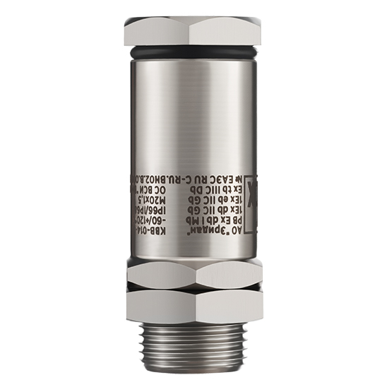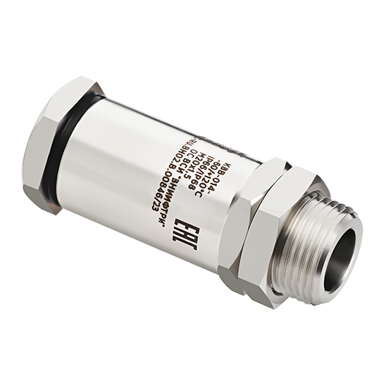 Взрывозащищенный кабельный ввод с Ех маркировкой для открытой прокладки кабеля с внешним диаметром до 14 мм из нержавеющей коррозионно-стойкой стали.