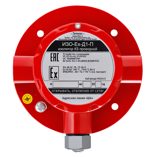 Устройство сопряжения в модификации УС-07-M1108 (далее – ИЗО-Ex-Д1-П) представляет собой изолятор короткого замыкания проходной во взрывозащищенном корпусе. УС предназначено для: