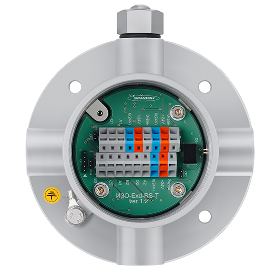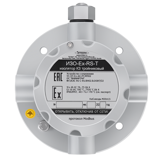 ИЗО-EX-RS-Т (устройство сопряжения УС-07-М1102) - тройниковый изолятор короткого замыкания и разветвитель линий связи Modbus RTU и питания 24в DC с функцией повторения интерфейса предназначено для:
